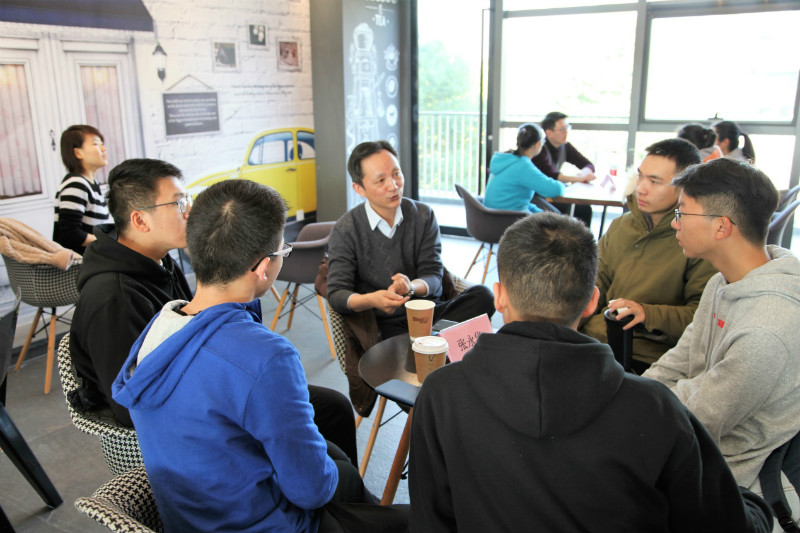 这一次见面会恰逢一个难得的晴天。活动开始之前,老师和同学们踏着久违的阳光陆陆续续抵达了咖啡吧。尽管室外气温较低,但会场融洽而温馨的气氛使得老师和同学们的交谈进行得十分热络而顺畅。三四位大一新生与他们的新生之友围坐一圈,分享进入大学以来的所见所闻,畅谈对未来的规划与设想,咨询进入大学以来所遇到的各种问题。不大的咖啡吧里充盈着热烈而欢欣的气息,温暖了整个冬日。
