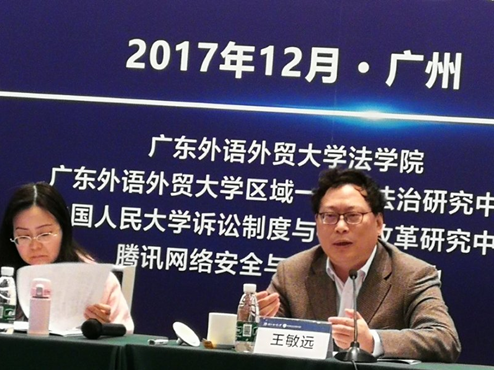 2017年12月2日,由广东外语外贸大学法学院、广东外语外贸大学区域一体化法治研究中心、中国人民大学诉诉讼制度与司法改革研究中心和腾讯网络安全与犯罪研究基地共同主办的“智慧司法与司法改革”研讨会在广州举行。