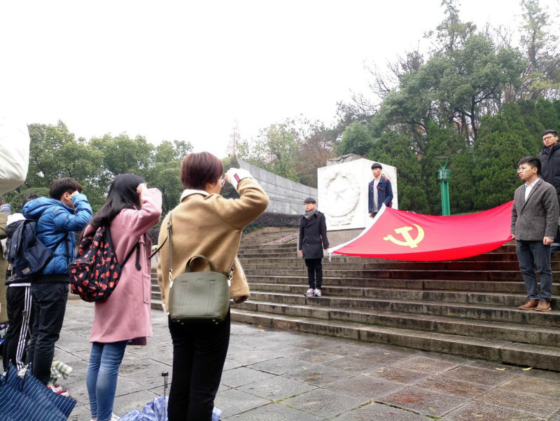 2017年12月16日,光华法学院预备党员培训班前往浙江革命烈士纪念馆,缅怀革命先烈,悼念南京大屠杀死难者,并在党旗下庄严宣誓。