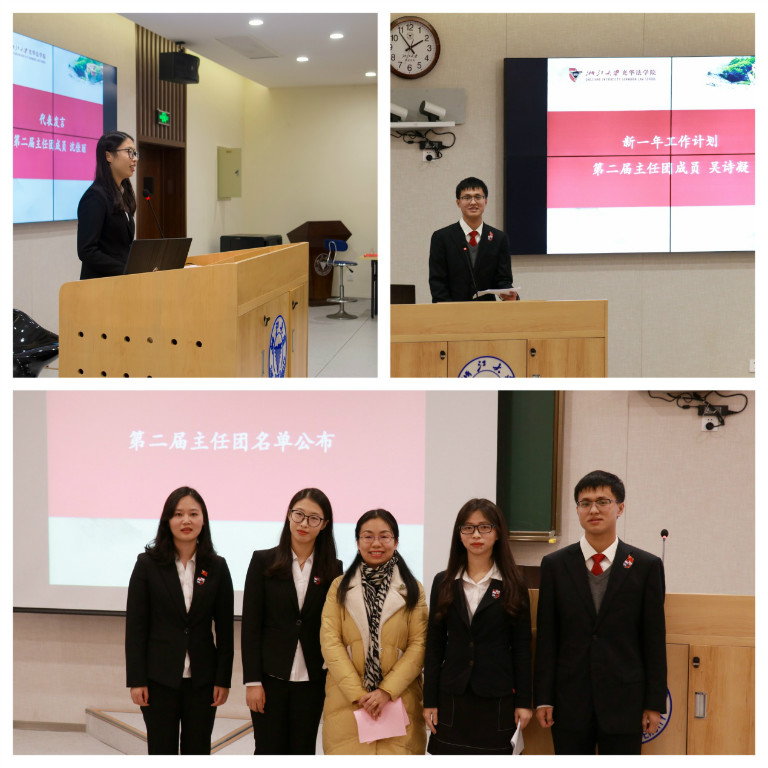 光华法学院党委副书记吴卫华老师上台公布第二届主任团名单,新任主席团成员沈佳丽上台表达了愿与中心共成长的拳拳决心,希望大家一起做行走在公益路上的法律人。新任主席团成员吴诗凝上台宣读了未来一年的工作规划,点面铺开的计划高屋建瓴而又接地气,令人对未来一年法援的发展充满着期待。
