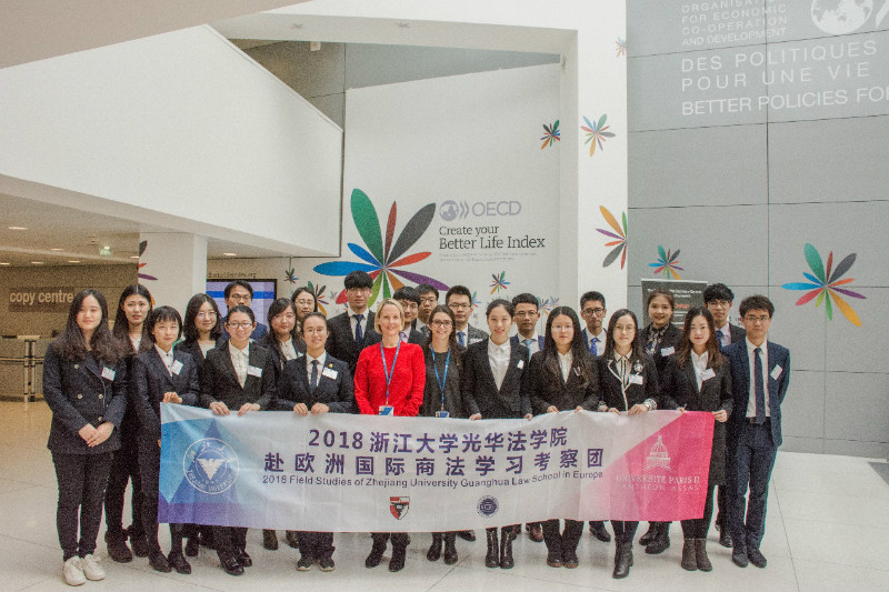 参访国际组织的第一站,考察团来到了总部位于巴黎的世界经济合作与发展组织。世界经合组织是由35个市场经济国家组成的政府间国际经济组织,旨在共同应对全球化带来的经济、社会和政府治理等方面的挑战,并把握全球化带来的机遇。负责接待我们的工作人员Phyllis Flick女士向同学们详细地介绍了经合组织的组成、职能等,也向同学们表达了她的希望——年轻的中国浙大学子带来浙大的声音,中国的声音。