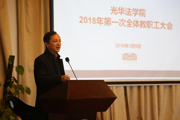 另外,周江洪常务副院长对我院2018年的工作进行了展望。他指出,2018年的工作重点仍然是“双一流”建设,要加强基础学科以及新兴优势学科的同步建设,在人工智能、互联网法学等领域加大投入力度,进一步提升学院的学术影响力。在人才培养上,要优化课堂建设,推动本科生、研究生课程改革;在科研工作上,希望我院在学术建设上能取得更大进展;在外部建设上,重点推进与哈佛大学等国际名校进行合作交流,加快视频课程建设;在图书馆建设上,在一流图书馆建设基础上,继续加强特色建设;在支撑体系方面,加强海外宣传力度,推进继续教育工作,注重校友联络,提升行政效能;在党建、团建和学生工作方面,学习贯彻党的十九大精神,加强学生思政工作,推进高端就业。