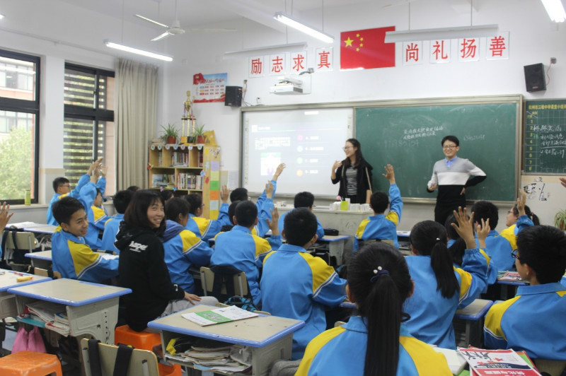 16名志愿者和三墩中学八年级的八个班的学生们进行了法律知识的交流互动。活动持续两个小时,场面热烈,学生们踊跃发言,志愿者们也积极给予解答。室外阴雨绵绵,教室里的活跃气氛却似夏日般热烈。
