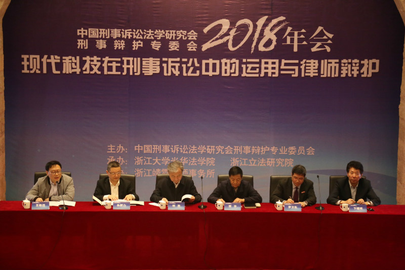 中国刑事诉讼法学研究会副会长及研究会刑事辩护专业委员会主任、浙江大学光华法学院王敏远教授主持了开幕式。浙江大学副校长罗卫东、中国刑事诉讼法学研究会会长卞建林、中国法学会副会长郎胜、浙江省人民检察院检察长贾宇、浙江省高级人民法院副院长朱新力在开幕式上先后致辞。
