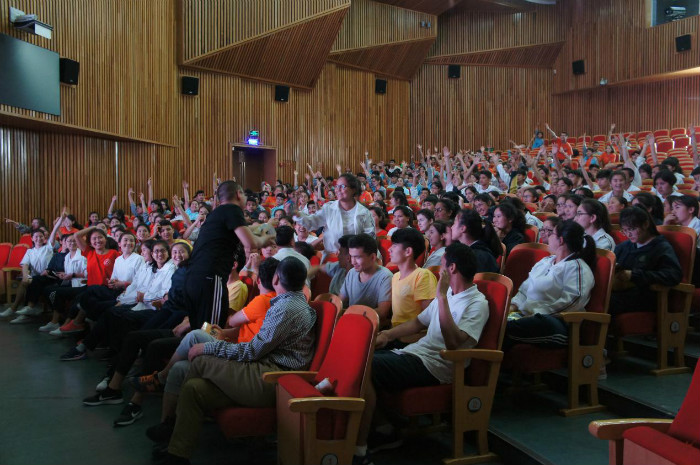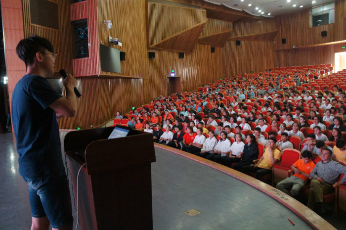 法研成员刘凯同学在活动伊始向在场的老师和两百多名同学们播放了浙江大学宣传片并简单介绍了浙江大学的发展现状与学科特色。刘凯同学幽默的讲解引起在场老师和同学们阵阵掌声与欢呼,本次活动在高涨的气氛中正式拉开了序幕。