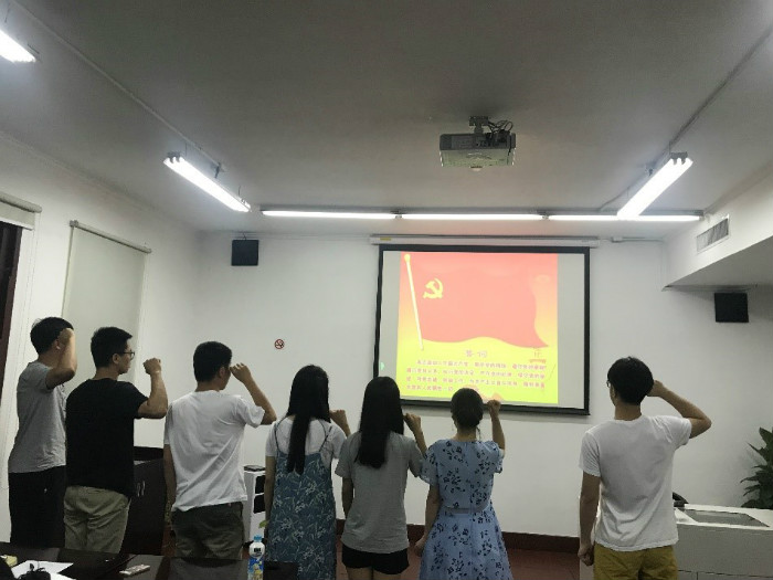 接下来,在支部书记裘铮杰的带领下,三位新党员与三位转正党员怀着庄严肃穆的心情在党旗下进行了入党宣誓。