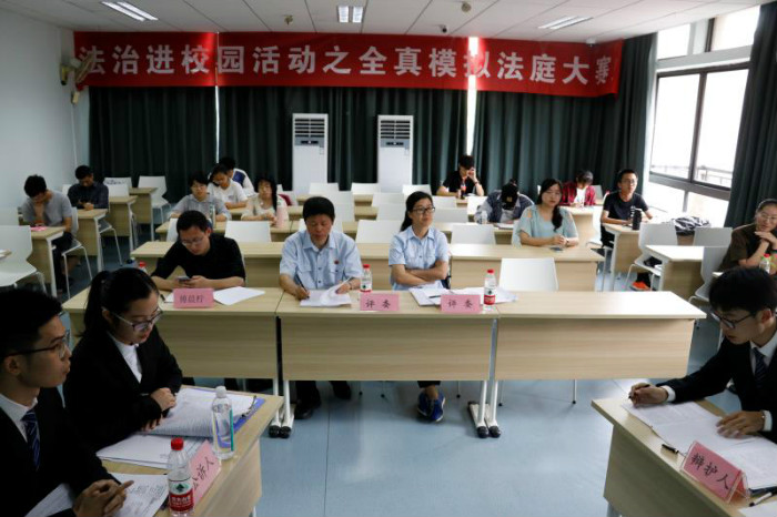 同一时段还有在紫金港校区西一202教室举行的全真模拟法庭半决赛。这一活动由我院学生会实践拓展部负责,邀请了浙江省高级人民法院基层工作处处长吴道富、刑二庭副庭长郑晓红作为评委,校团委副书记(挂职)傅晨柠作为嘉宾出席。模拟法庭比赛锻炼了法律学子的法律适用能力、逻辑分析能力、案件事实分析整理能力、法律文书撰写能力、口头表达能力和临场反应等多方面综合能力,有效地弥补了现实法学教育的不足,在当今法学教育中发挥着不可替代的作用。赛场上,控辩双方你来我往,以法为芒,争锋相对,以辩为剑,激荡四方。公平与正义永远是法学学子不懈的追求。