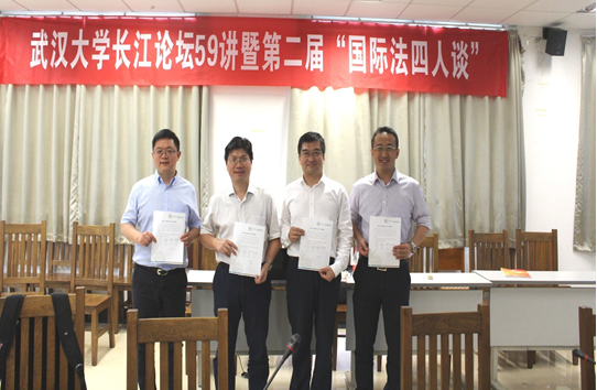 2018年6月3日,第二届“国际法四人谈”学术活动在武汉大学成功举办。我院副院长赵骏教授,吉林大学何志鹏教授,厦门大学蔡从燕教授和武汉大学黄志雄教授四位国际法学者齐聚珞珈,就“中国国际法学者与国际法实践”这一主题进行深入的交流与探讨。“国际法四人谈”是在以往学术会议和学术讲座基础上进一步发展的一种研习方式,由四位国际法学者分别围绕不同题目主讲90-120分钟,之后的60-90分钟内则由其他三位学者以及听众进行评论和提问。此种活动形式既能避免学术会议发言者时间短暂、观点难以充分展开、听众参与不足等缺点,又可以借由多个相关主题相互启发和借鉴、主讲人之间彼此评论和“交锋”。