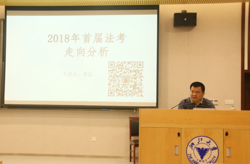 为了帮助同学们更好地备战法律职业资格考试,浙江大学法律硕士协会于6月12日晚7点在曾宪梓楼203室举办了法考经验交流会。此次交流会邀请前司法部司法考试中心命题处长桑磊老师作首届法考分析,同时也邀请黄超、汪菁菁、赵计义三位高分通过国家司法考试的同学为大家分享备考经验。团委书记李冬雪老师受邀出席此次交流会。