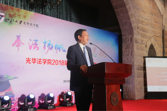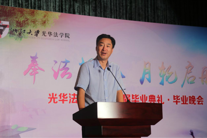 6月22日晚,浙江大学光华法学院2018届毕业典礼·毕业晚会在之江小礼堂举行,我院师生齐聚一堂,共同庆祝320名2018届毕业生顺利毕业。出席本次典礼的优秀校友代表有浙江东鹰律师事务所首席合伙人金鹰,浙江六和律师事务所高级合伙人张敏,浙江泽大律师事务所主任王小军;学院常务副院长周江洪,党委副书记吴卫华,副院长郑春燕,院长助理郑磊,班主任德育导师代表王海波、聂原、林劲松、应坚,导师代表陈信勇、陆青、翁晓斌,教育教学中心主任吴竹群、教育教学中心钟原、陈思均,团委书记李冬雪,副书记王书剑、骆笑,辅导员柴烈等老师出席本次毕业典礼。典礼由学院党委副书记吴卫华主持。