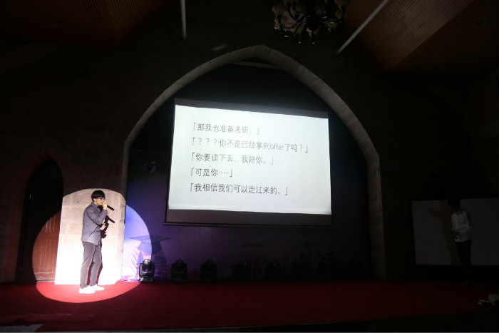 现场更有将歌曲与幻灯片结合的投影剧,法学1403班黄良宇、李�祝愿青春《不散场》,2016级法本法硕纪念《月轮山上的日子》。光影纵横间,记录着大家在之江度过的点滴和难以割舍的同窗情谊。