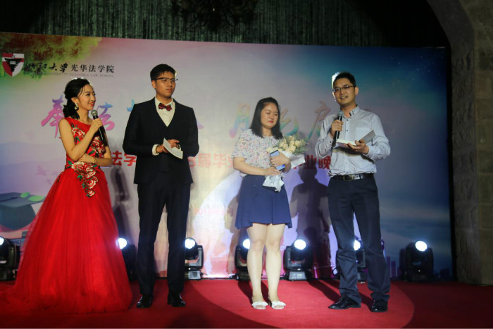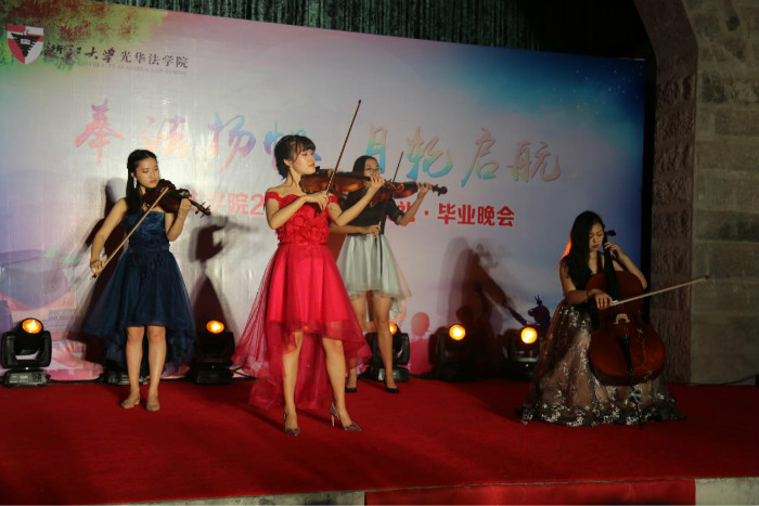 本、硕、博毕业生们欢聚一堂,载歌载舞。法学1404班张璎璐带来《越过山丘》,畅想诗与远方。2015级法硕1班的汪宁越、陈昱带来动感的《shape of you》。2016级科硕陈雅冰携舞伴王涛带来摩登舞《爱乐之城》,倩影翩翩,令人心醉。法学1402班高梅、贺嘉贝、毛雨晴、丁楚琦默契配合,带来弦乐四重奏《一步之遥》。硕博生季若望、范佳洋、朱佳晨、周奕佳带来歌曲《寂寞的季节》、《月半小夜曲。