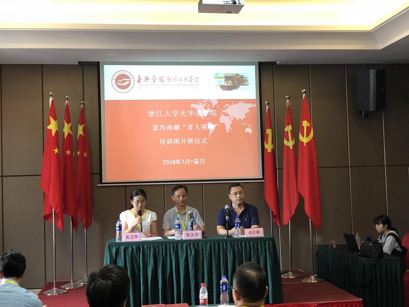 7月12日上午,培训活动开班仪式在嘉兴学院南湖干部学院的培训基地举行。本次开班仪式由党委副书记吴卫华同志主持。嘉兴学院南湖干部学院副院长陈红新同志致辞。他对参加此次培训的老师们表示热烈欢迎,并介绍了嘉兴学院南湖干部学院的基本情况。之后是浙江大学光华法学院党委书记张永华同志讲话,他回顾了往年“育人强师”培训的情况,指出了此次培训旨在坚定理想信念,锤炼优良作风,不忘初心,牢记使命,努力把法学院建设得更好。