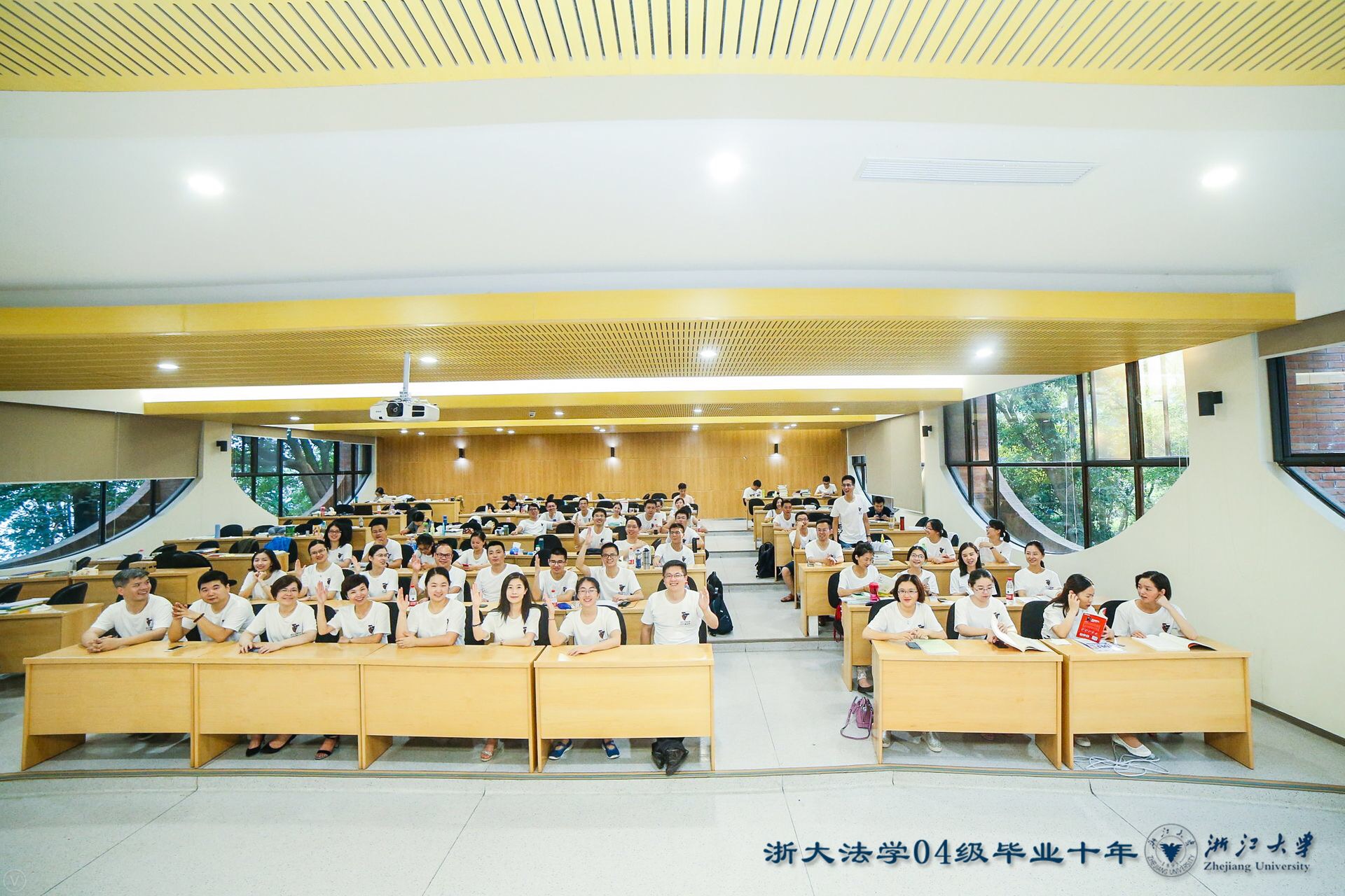 2018年8月4日,暑假绿荫如画的求是园里迎来了一群从全国各地赶回来相聚的浙大法学校友。他们2004年在紫金港校区初入求是园,2008年6月从之江校区毕业离校,毕业十年后相约今日重返母校。2017年浙大百廿华诞时,他们中就有多位校友返校参与校庆活动,并开始商议筹备十周年同学聚会事宜。后经年级热心同学们的逐步推进,其他同学的积极响应,十周年聚会顺利举行。