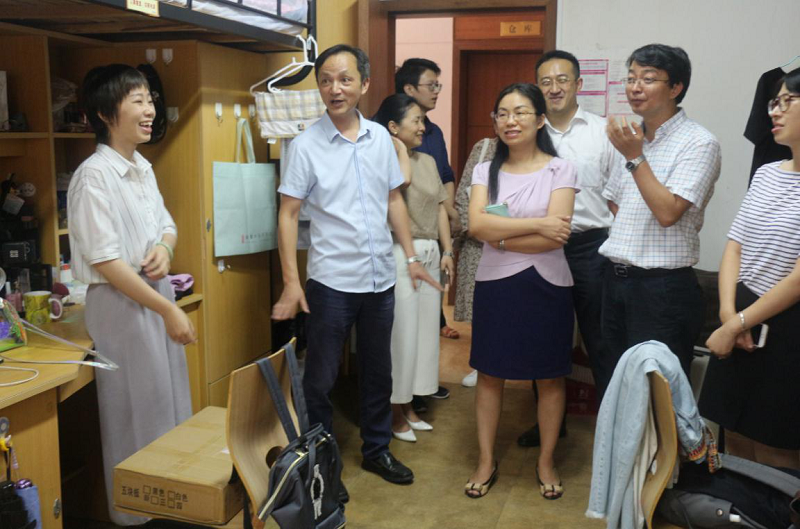 2018年9月14日下午,浙江大学之江校区党工委书记、管委会主任、光华法学院党委书记兼副院长张永华,常务副院长兼党委副书记周江洪,党委副书记兼纪委书记吴卫华,副院长、党委委员赵骏、郑春燕在学院团委王书剑、骆笑、柴烈等老师和之江宿管办陈东霞楼长的陪同下,一同走访了之江校区学生寝室,与新上山的同学们亲切交谈。
