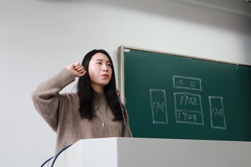 在同学们的热烈掌声中,孙晓红老师为大家详细地介绍了教学相关工作。针对同学们提出的几个问题,包括培养方案和选课的具体细节、社会调查的基本情况以及海外交流的相关项目,孙晓红老师都耐心地一一做出了解答与说明。
