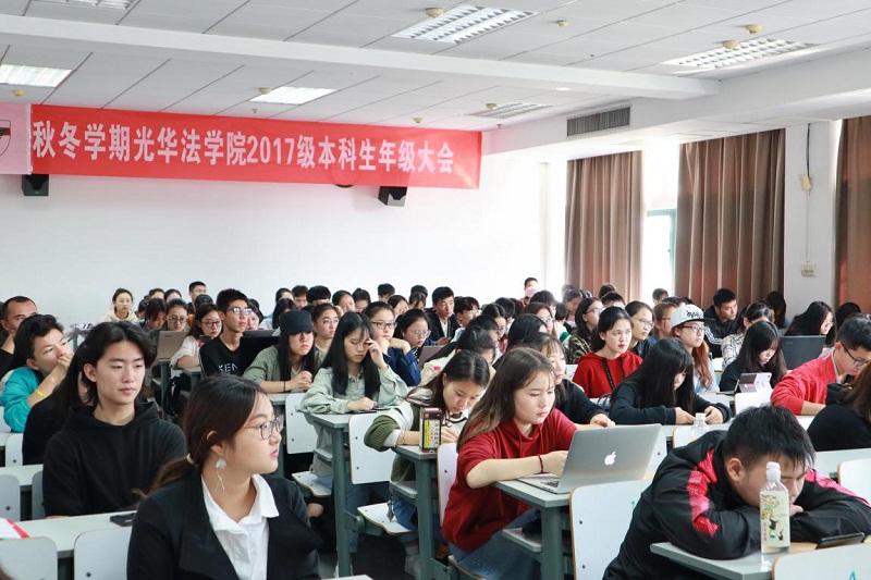 2018年10月19日下午,浙江大学光华法学院2017级本科生第一次年级大会在紫金港校区东一A-201教室举行。光华法学院副院长、党委委员郑春燕老师,光华法学院教育教学中心副主任孙晓红老师以及光华法学院团委副书记王书剑老师出席了大会。大会由光华法学院团委副书记骆笑老师主持。