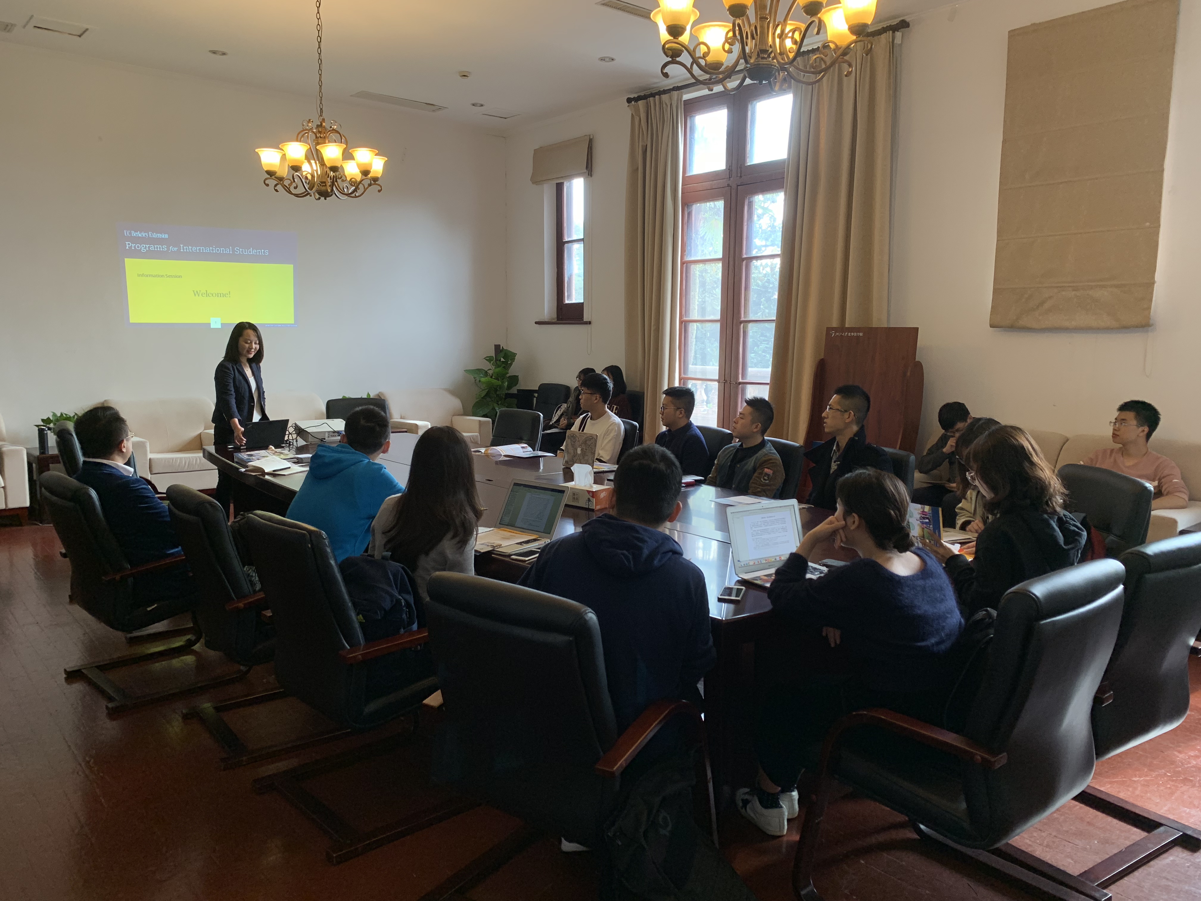 2018年11月2日上午,UC Berkeley项目(Berkeley Legal Studies Global Access Program)宣讲会在浙江大学之江校区主楼208室顺利举行,宣讲会由浙江大学光华法学院副院长赵骏教授主持,外事秘书洪佳颖老师协助组织,UC Berkeley Extension国际项目学生服务顾问 Echo Xiao进行讲解,我院众多学生参与了此次宣讲会。