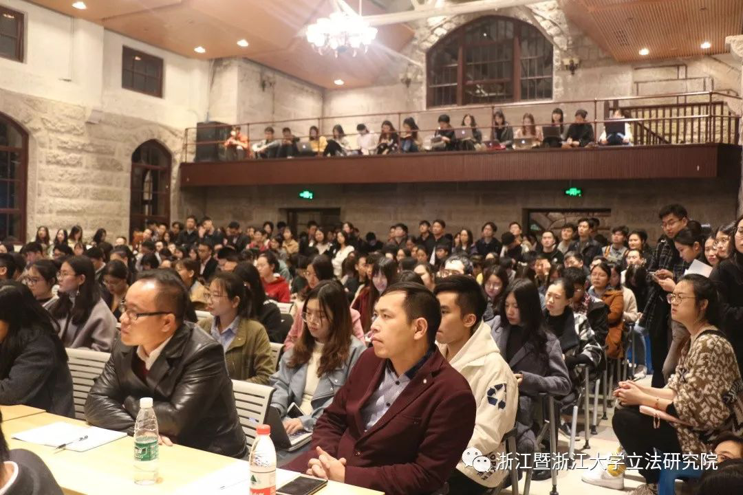 2018年11月9日晚,在浙江大学之江校区小礼堂,浙江立法研究院暨浙江大学立法研究院邀请中国著名民法学家、中国社会科学院学部委员、中国社会科学院法学研究所研究员梁慧星教授主讲第三期“立法名家讲坛”,主题为《怎样看待人格权编草案》。本次讲坛由浙江大学光华法学院教授张谷主持,浙江省人大常委会法制工作委员会办公室主任田梦海等领导、浙大民商法研究所陆青、章程,浙江农林大学法政学院教授马永双、德恒(杭州)律师事务所的律师团队等实务界和理论界的专家出席本次讲坛,浙江大学、浙江理工大学、浙江工商大学、中国计量大学、浙江农林大学等高校的学生以及高度关注中国法治的社会各界人士也慕名前来参加本次讲坛,用智慧的火光驱散初冬的寒意。