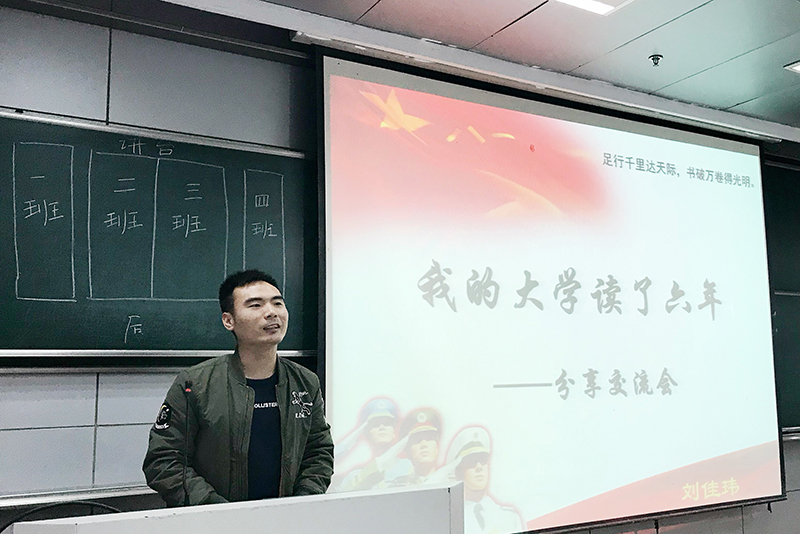光华法学院18级法律硕士研究生刘佳玮学长作为受邀的优秀学长向大家展示了他丰富的人生经历。他在本科期间曾作为上海市十年来首批进藏兵,在西藏,他说“缺氧不缺精神”。他还强调了坚持的重要性,任何事情只要不断坚持,终能够习惯成自然。从他的身上,能够看到一个榜样所应具有的优秀品质,让在座的同学们都深感敬佩。