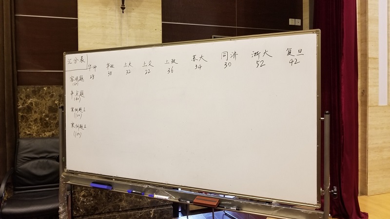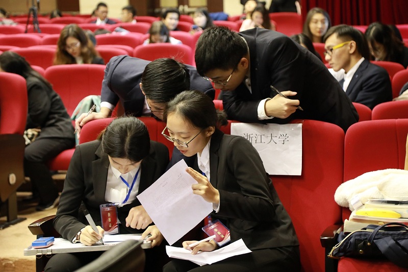 上午进行的是积分淘汰赛,分为客观题和争点归纳题两部分。客观题主要涉及婚姻、继承、房产、合同、侵权、劳动用工、诉讼等与实际生活密切相关的内容。由于这一环节不能查阅法条资料,这对参赛队员的法律基础知识提出了更高的要求。上午的客观题竞赛结束后,浙江大学代表队以52分的积分位列全场第一。