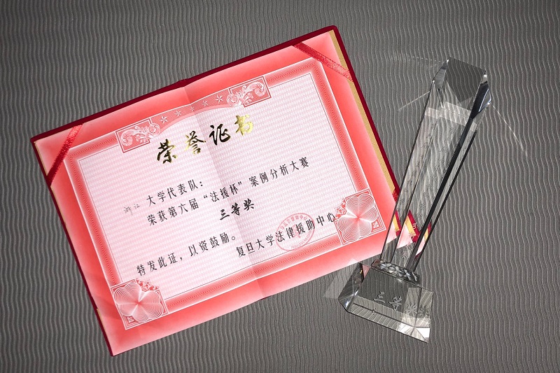 2018年11月18日,应复旦大学法律援助中心邀请,浙江大学学生法律援助中心派出成员参加第六届“法援杯”案例分析大赛,最终以第三名的成绩获得三等奖。