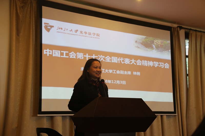 2018年12月3日(星期一)上午09:00,中国工会十七大精神交流会在之江校区主楼308成功举行。出席本次交流会议的有浙江大学工会副主席林俐,光华法学院、公管学院、校医院的工会委员、经费审查委员会委员、工会小组长等。本次交流会由光华法学院党委副书记、工会主席吴卫华主持。雨后的之江微微有些寒意,却丝毫不影响学习交流会现场各个工会成员围绕中国工会十七大精神展开热烈的讨论。