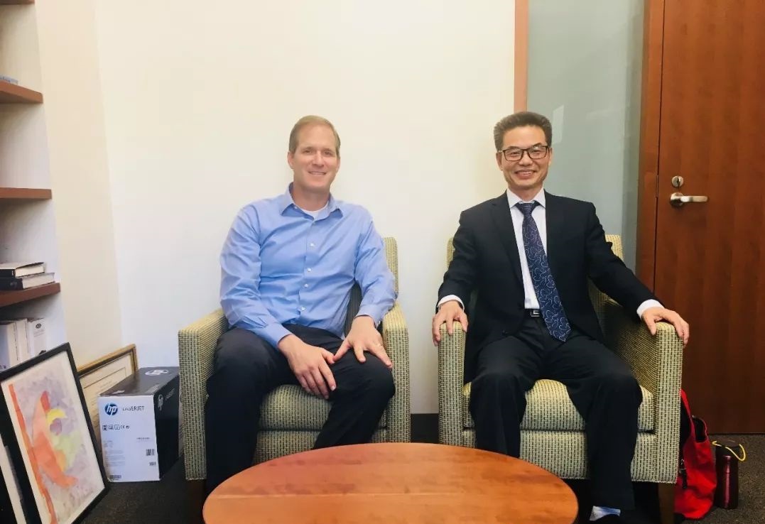 钱弘道教授还拜访了斯坦福大学法学院Curtis J. Milhaup教授,并就相关合作事宜进行了洽谈。钱教授介绍了中国法治实践学派的产生背景和基本内涵,介绍了浙江大学学术团队与斯坦福大学法学院中国指导性案例研究项目主任Mei Gechlik合作的中国首个电子政府发展指数(E-government Development Index),介绍了中外法律学者合作的“1818智慧法律服务”(1818 Wise Legal Services)实验项目,并邀Curtis J. Milhaup教授2019年访问浙江大学光华法学院、合弘威宇律师事务所(Qreat Way Great Win Law Firm)。