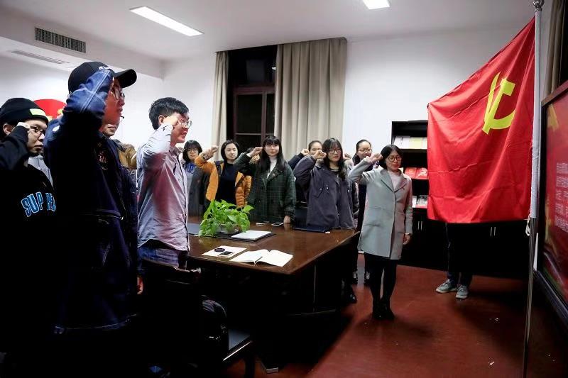 2018年12月20日,浙江大学光华法学院举办了一场别开生面的“政治生日会”活动。几十位新入党的预备党员齐聚“党员之家”,共同庆祝自己党员生涯的开端。本次活动以习近平同志在庆祝改革开放40周年大会上的讲话精神为着力点,通过师长分享入党故事、老党员为新党员佩戴党徽、铿锵有力的入党宣誓、畅谈改革开放四十年国家与个人的变迁等环节,充分提高党总支内部成员的凝聚力。活动由光华法学院兼职辅导员、本科生第三党支部书记陈科主持。