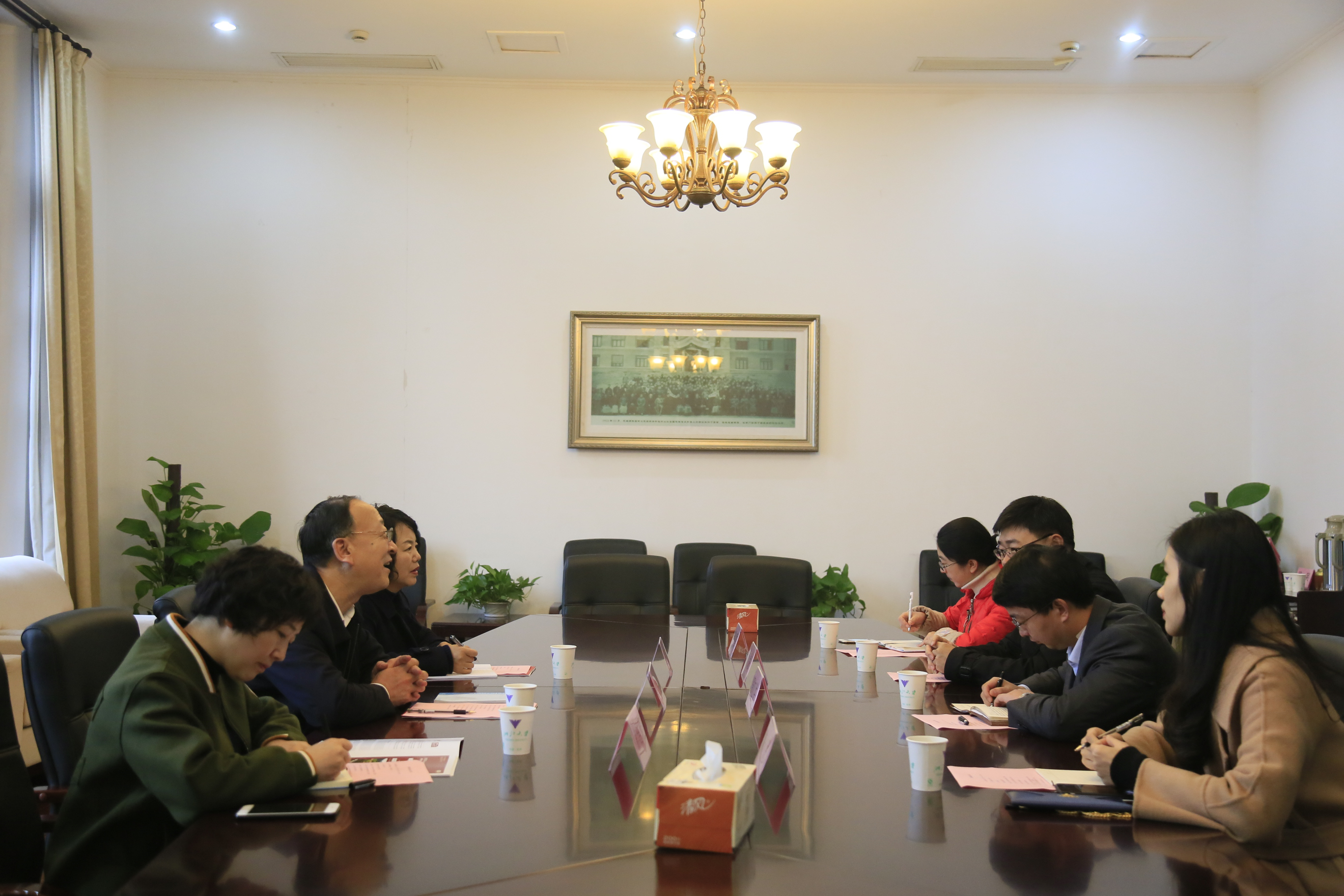 会上,周江洪常务副院长对甘肃政法学院一行的到来表示热烈欢迎。双方就本科培养方案、实践教学、人才培养等工作展开探讨交流,并相互学习经验。最后,会议在融洽的氛围中结束。