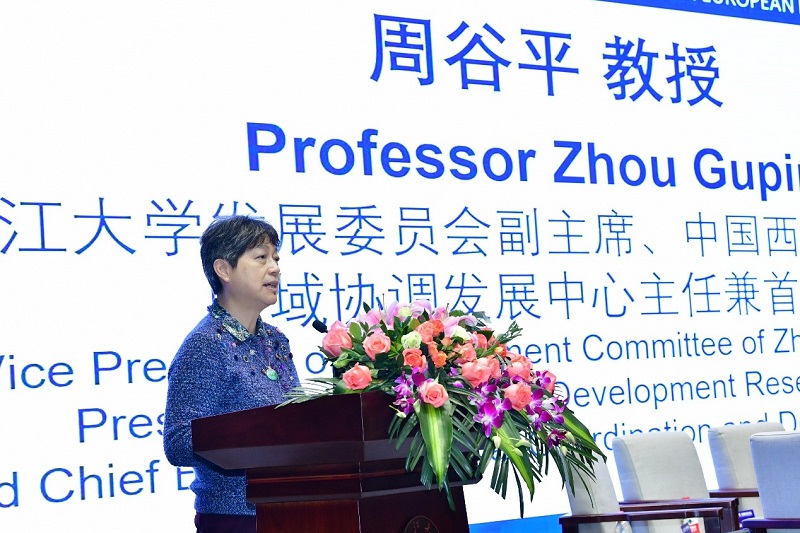 论坛合办方代表致辞环节,第一部分由浙江大学光华法学院副院长郑春燕主持,发言的代表有浙江大学发展委员会副主席、中国西部发展研究院院长、区域协调发展研究中心主任兼首席专家周谷平教授;清华大学国家治理研究院院长王振民教授;国家法官学院副院长李晓民;清华大学一带一路战略研究院院长史志钦教授以及美国Kaufman法律集团GaryJay Kaufman先生。