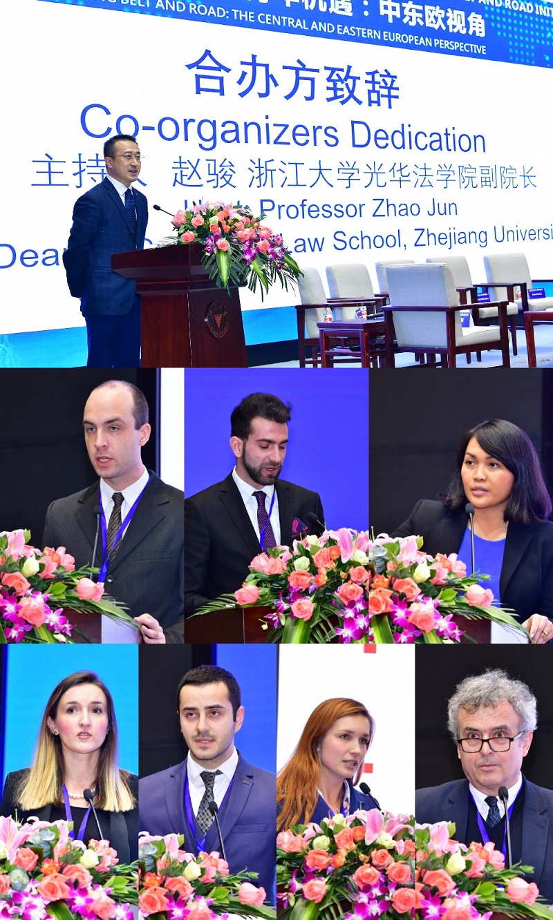 合办方致辞第二部分由浙江大学光华法学院副院长赵骏主持,发言的代表有宛维尔纽斯大学Balys Astrauskas;波兰雅盖隆大学Jakub Stefanowski;克罗地亚发展与国际关系研究院Anastasya Lezaic;波黑萨拉热窝国际大学Dzejla Medzedovic;塞尔维亚国际政治与经济研究院Nenad Stekic;捷克大都会大学Michael Vit以及匈牙利塞格德大学József Hajdú教授等。各合办方代表介绍了各自代表的学校或研究院的情况,并且希望借助“一带一路”平台能够与中国合作方一同为各国青年搭建更多的合作与交流平台。