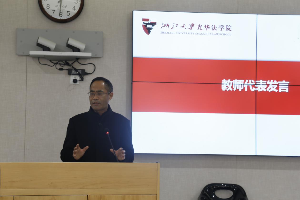 之后,教师代表夏立安教授和青年教师李世阳分别发言。夏立安教授认为法学院像个大家庭,全体教职工同心协力,为学院如何越来越好而努力,此外还对完善学院的管理体制提出了宝贵建议。