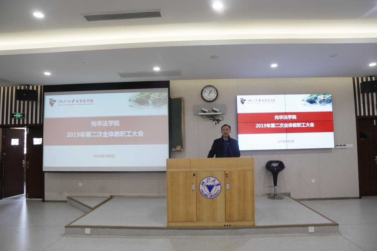 2019年3月8日下午,学院2019年第二次全体教职工大会在曾宪梓楼102会议室召开。