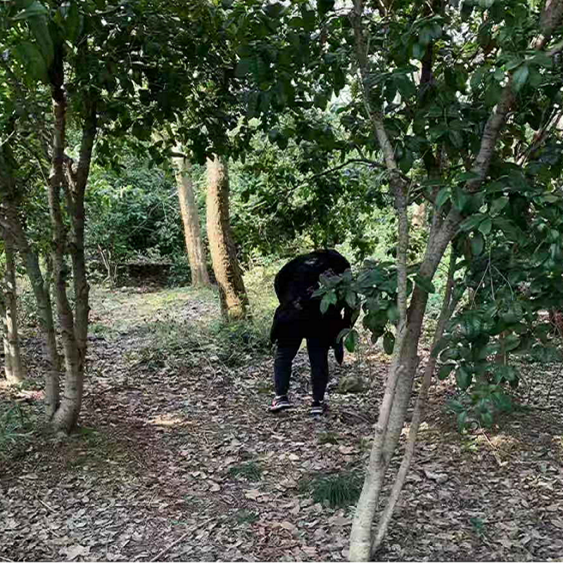 (图为同学深入树林,翻找隐藏在树叶下的垃圾)