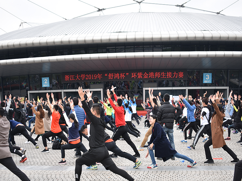 天气微凉,但师生参与接力赛的热情却丝毫不减。正式开跑前,体育老师带领各参赛队员进行了必要的热身运动。在激扬的音乐下,各参赛选手认真地完成了热身操,跃跃欲试。在安保人员和医护人员进行了必要的准备后,师生接力赛正式开始了。发令枪一声令下,师生们以最饱满的精气神奔跑在美丽的紫金港校区的跑道上。一路上,加油声不绝于耳,参赛师生们怀愉悦的心情完成了一棒又一棒的交接。