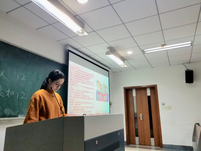 接下来,团支书冯欣恬进一步对2019年两会内容做了专题介绍。她首先从两会概况谈起,再到政府工作报告和两会热点问题,并简要地介绍了“医疗保障”、“教育改革”、“依法治国”等两会讨论的热点问题。现场学习气氛十分热烈。