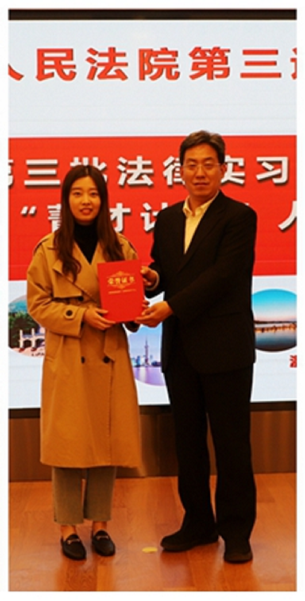 我院实习生曹旖、张敏参加了模拟法庭活动,分别担任案件中的上诉人、审判员,庭下准备工作详实周到,并取得了良好的成果。两位同学均获得了何抒副庭长、何君法官的肯定,曹旖同学被评为“优秀法律实习生”。