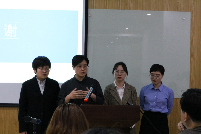 最后,评委结合每支队伍提交的纸质文书和现场表现,评选出获奖队伍。结果揭晓,一等奖“横竖都队“(王帆、周妍、朱梁艳),二等奖“月轮崇法队”队(杨洋、洪晓慧、朱明、江周航),三等奖“鸭爷说的都对”(李上、吴琴、张馨文、朱思颖),优胜奖“伍仟里美队“(孙雨乐、杨晓菲、李枳壑、蒋琳)、“PENTA KILL队”(马雯靖、欧阳阳、邱耀娴、郑健意)和“甲方爸爸怎么都队”(陈昊、陈璐桦、董贞峰、包雍彬)。评委分别为获奖队伍颁发了奖状、奖金并合影留念。