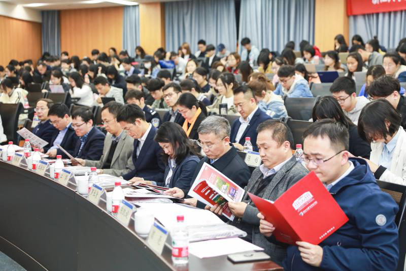 随后,党委学工部部长郭文刚老师为开幕式进行了致辞,宣布了法文化月的开幕。郭文刚老师说,今年是建国70周年,是纪念五四运动100周年,也是实施“七五”普法规划的第三年,是承上启下的关键之年。法治兴则国家兴,法治不仅与国家命运息息相关,更与每个人的日常生活密不可分。作为成长在新时代的大学生在法治社会建设征程中,更应该做到知法、学法、守法、用法。郭文刚老师高度肯定了浙江大学光华法学院近年来的显著发展成果:与浙江省高级人民法院、浙江省检察院签署战略协定,与国际一流大学交流日益频繁,实现了百分之百的出国境交流机会,培养了一大批优秀毕业生。最后,他希望第十八届法文化月继续发挥法学院学生的专业特长,着力提高全校学生的法律修养,培养学生的法治意识,进一步落实普法教育工作,提升求是明理的人文精神,为实现和谐校园、平安校园不懈努力。