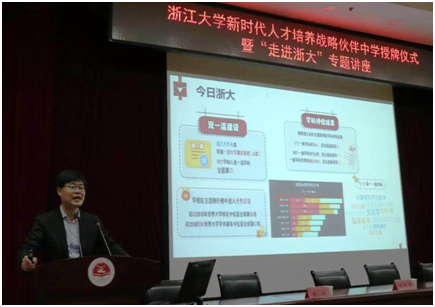 “新时代人才培养战略伙伴中学”是浙江大学通过与一流中学建立沟通衔接机制,交流新时代人才培养的新模式,期待通过本次授牌仪式和“走进浙大”专题讲座开启浙江大学与温州各中学的深度合作,共同培养新时代人才。