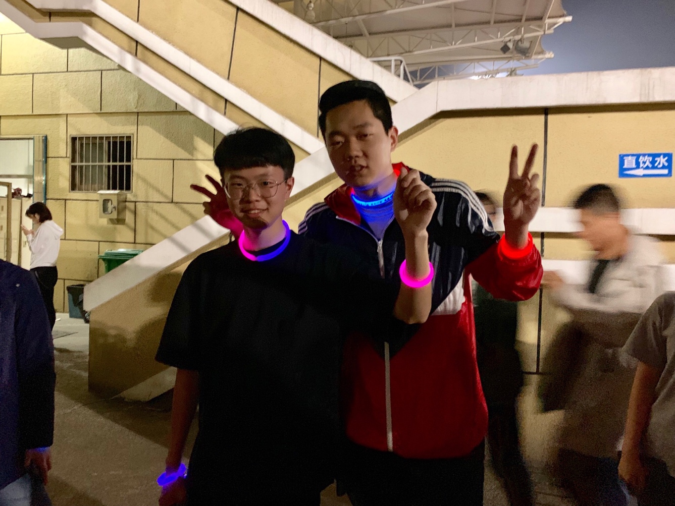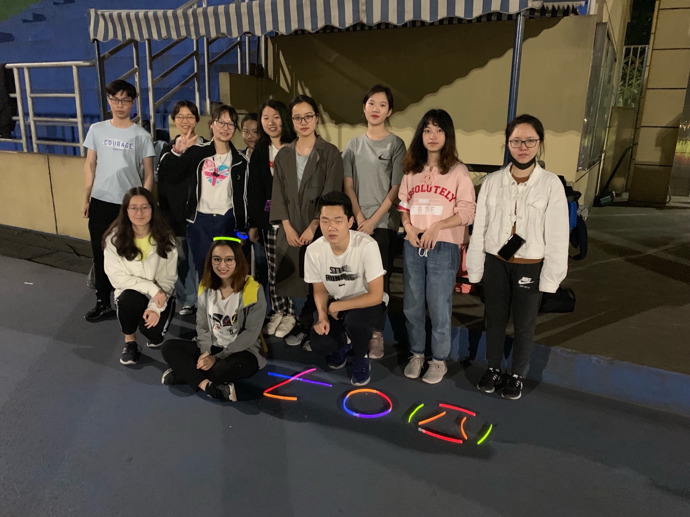 夜跑活动的最后,在班长的提议下,本科生1704团支部的同学们一起将手中的荧光手环拼成了“5.25”和“1704”字样,并与大家一起合影留念。无论如何,我们将永远记住,在这个夜晚里,我们曾一起享受过跑步过程中的每一份宁静,一起捕捉过夜色中校园内的每一处别样风景,一起感受过温暖话语背后每一份善意与微小的感动。“涉外一七,砥砺前行”,相信在每一个将来,我们都能悦纳自我,恣意飞翔,奔向更美好的明天。