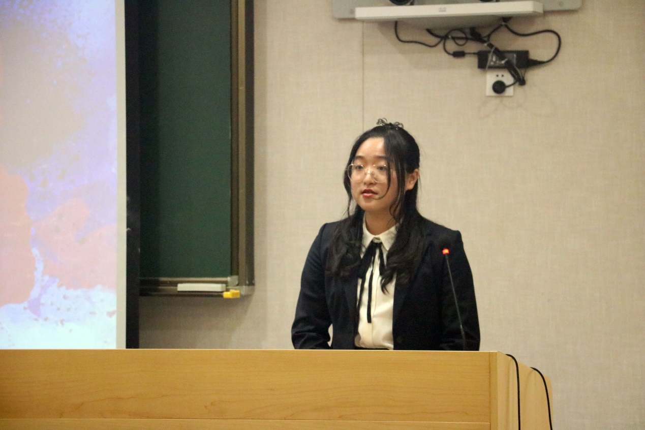 来自本科17级的4号选手姜玉珠同学则以稳健的台风阐述一个“律政先锋”捍卫正义应有的模样,得到评委一致好评,共获全场6盏爆灯。