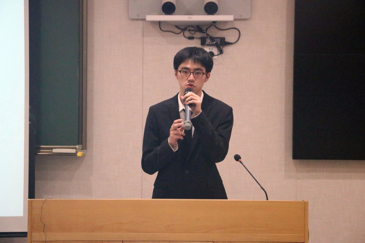来自18法学法硕的5号选手蒋经中则以三个问题“我是谁”、“为何选择我”、“我能为你做什么”展开了自我风采的展示,以其丰富多彩的大学经历斩获全场6盏爆灯。