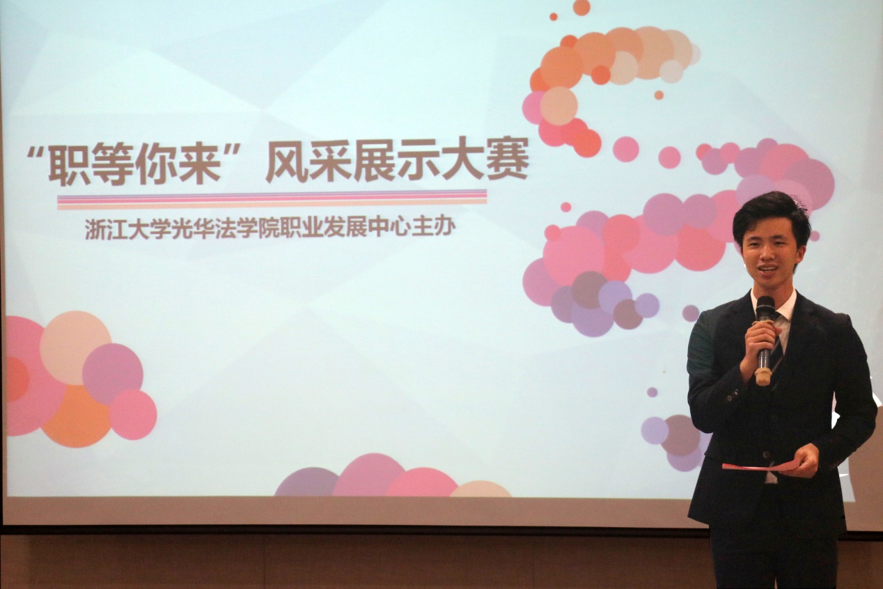 “此次风采展示大赛,是学院为同学们搭建的展示自我的平台,大赛目标是希望各年级学生都能够参与其中、通过体验和观摩真实的求职过程,更好地应对将来的求职挑战”,在主持人孙润哲同学的开场白后,精彩赛事拉开帷幕。