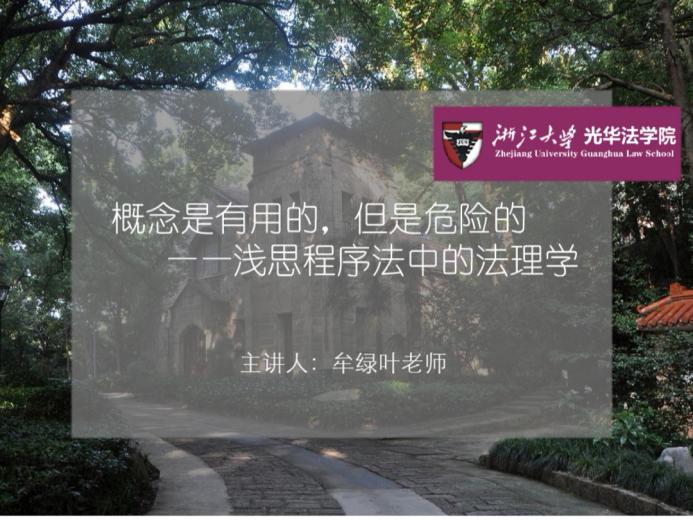 20195251830分,由浙江大学光华法学院学生会学术部主办的法文化月系列活动之学术讲座在西1-309教室如期举办。本次讲座由牟绿叶老师主讲,主题为“浅思程序法中的法理学”。