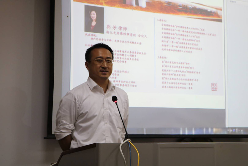 曾获“浙江省服务中小企业优秀律师”、杭州律师“新星奖”、华东律师论坛论文一等奖等荣誉的浙江天册律师事务所合伙人郭芳表示,涉外法律业务对前景非常广阔,希望同学正式加入这个业务领域之前,能够努力学好专业,并通过实务方面的锻炼打好基础。同时作为浙大校友,更是表达了对母校的深深情谊。