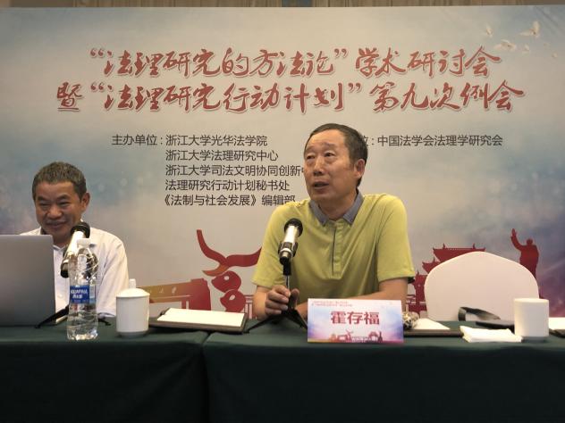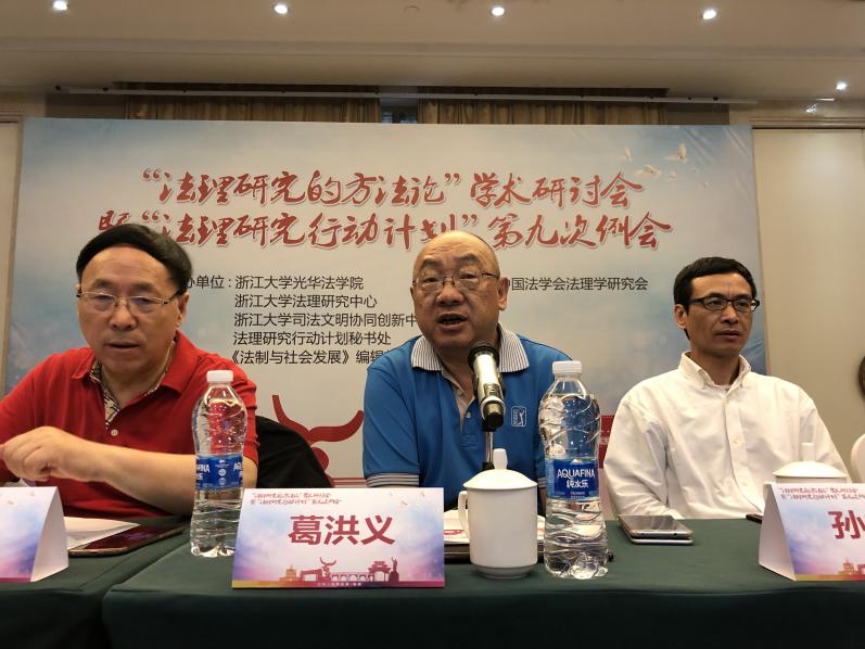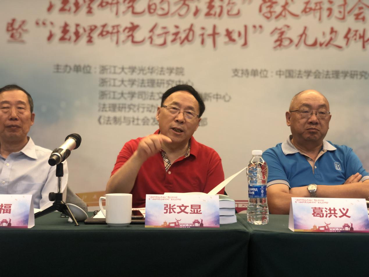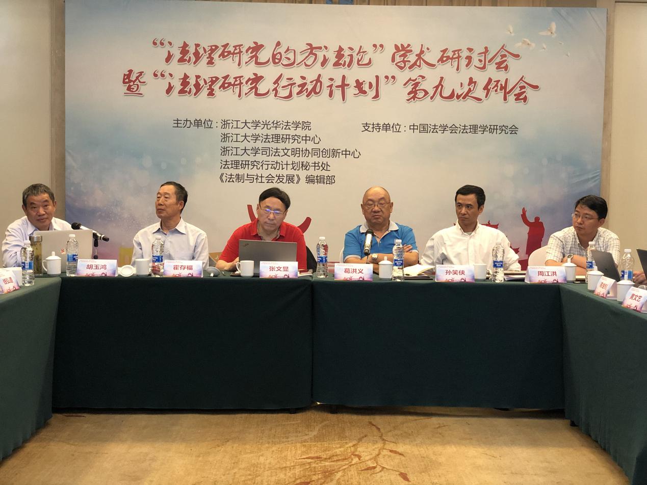 2019年5月26日,“法理研究的方法论”学术研讨会暨“法理研究行动计划”第九次例会在杭州召开,本次会议由浙江大学光华法学院、浙江大学法理研究中心、浙江大学司法文明协同创新中心、法理研究行动计划秘书处、《法制与社会发展》编辑部主办。中国法学会党组成员、学术委员会主任、浙江大学法理研究中心主任、《法制与社会发展》主编张文显教授,吉林大学黄文艺教授,复旦大学法学院孙笑侠教授,沈阳师范大学法学院霍存福教授、王旭伟教授,华东政法大学胡玉鸿教授、陈金钊教授,上海交通大学凯原法学院彭诚信教授,吉林大学法学院朱振教授、苗炎副教授,浙江大学光华法学院常务副院长周江洪教授、副院长赵骏教授、葛洪义教授、钱弘道教授、上海师范大学哲学与法政学院王奇才副教授、南京师范大学法学院丰霏副教授、山东大学法学院王姣云副院长等20余位专家学者,围绕会议主题进行了深入讨论。
