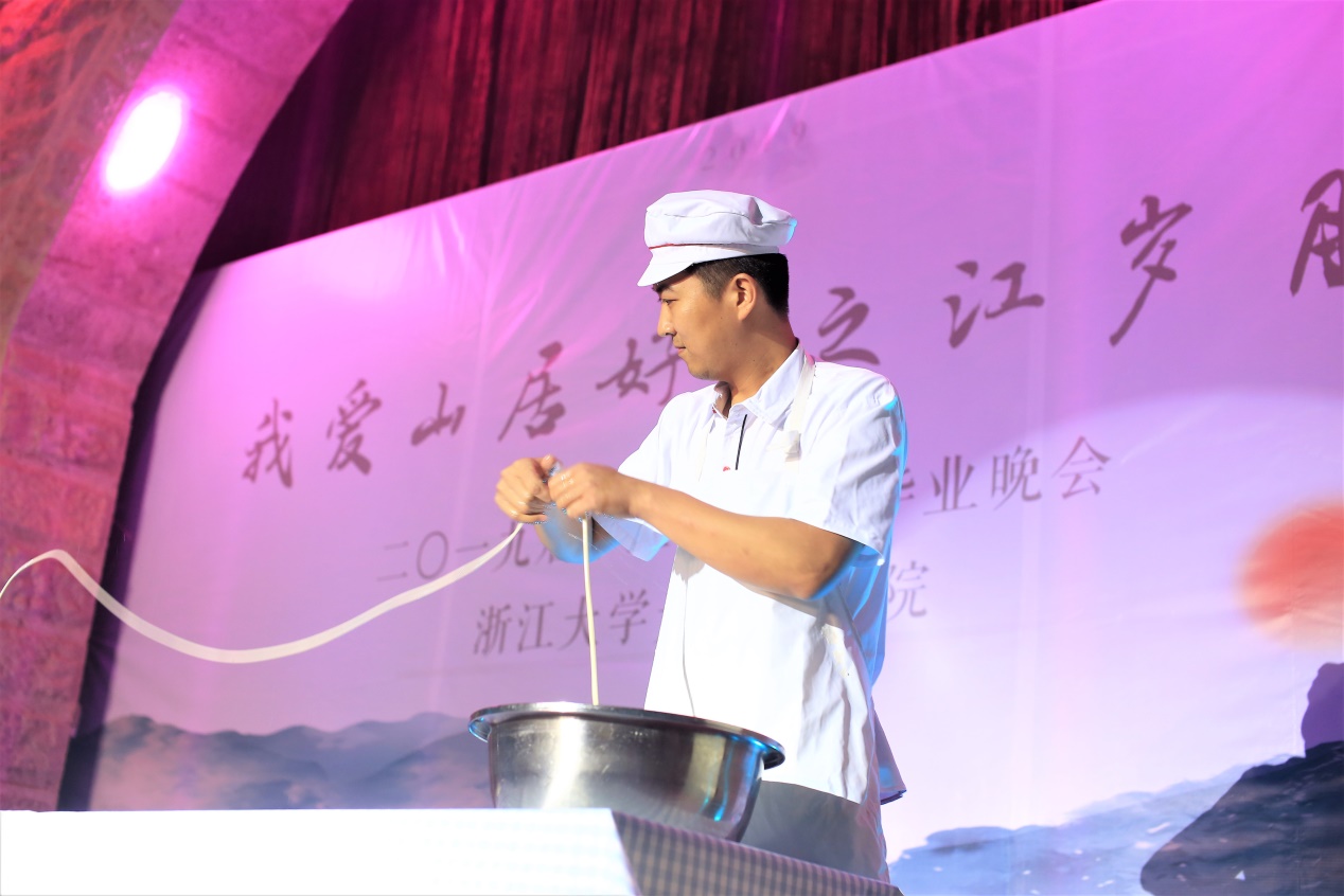 默默守护着这方水土,竭力为我们打造美好学习生活环境的后勤工作人员也来到了毕业晚会上。面点技师何永师傅的“一根面”表演让我们见识了大厨的手艺和一碗面条背后素来不为人知的功夫。小炒窗口人气小哥曹树炜,饮食工作中心2019年度先进工作者张惠清,12舍和13舍亲切的宿管阿姨郑细芬和严爱华,以及虽不善言辞但极为真挚的保安大叔朱继华也为同学们带来美好的毕业祝福。球队的传承仪式则让我们体会到薪火相传的感动。法学院男生虽少,但篮球队、足球队和羽毛球队依旧风生水起,队员努力拼搏,为学院勇争荣誉。晚会最后的真情一线牵环节,和着《房间》的旋律,毕业生们袒露心声,打开封存的记忆,互述在法学院的点滴美好,用故事串联起本可能并不相识的两个人的交集。