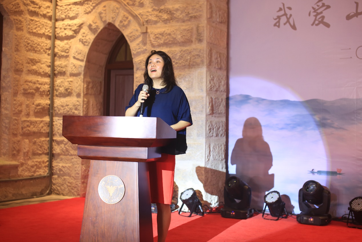 何羽浓作为本科生代表发言,她将继续在浙大深造。她叙述了四年间的生存法则与浪漫往事,她深情款款道:“虽然在之江的生活怡然自得,但我们并不沉溺于小确幸、小浪漫,我们看到、听到、感知到这个社会无时无刻不存在着的生存之艰。虽处山间,但四面八方、天南地北的存在着的事物牵动着我们、审视着我们。”